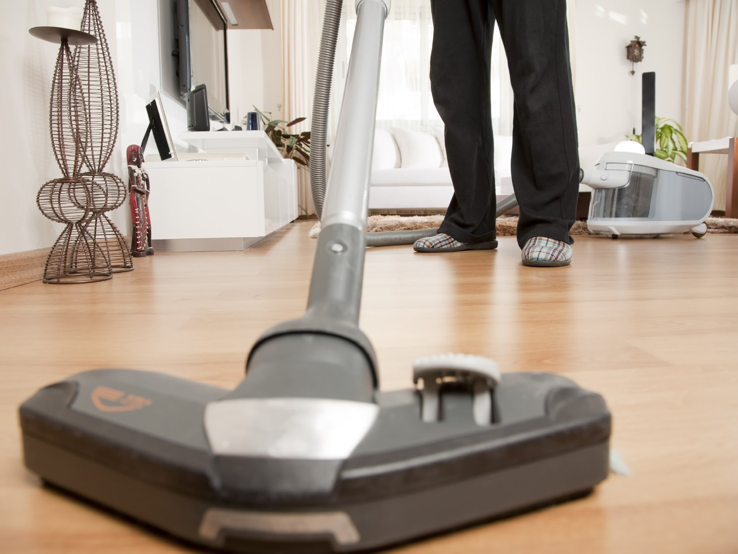 Vacuum all floors in every room. This includes stairs, carpeted rooms, hardwood, linoleum, and tile floors.